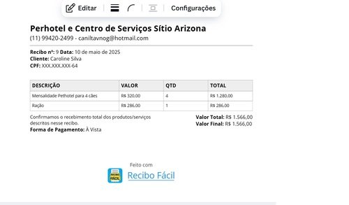 RECIBO MAIO / LAR TEMPORÁRIO + RAÇÃO