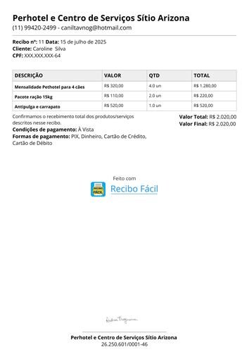 RECIBO JULHO / LAR TEMPORÁRIO + RAÇÃO + ANTIPULGAS