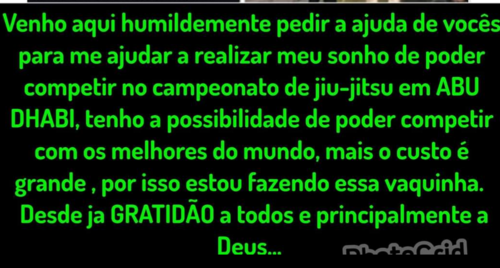 AVISO LEGAL: O texto e as imagens incluídos nessa página são de única e exclusiva responsabilidade do criador da vaquinha e não representam a opinião ou endosso da plataforma Vakinha.