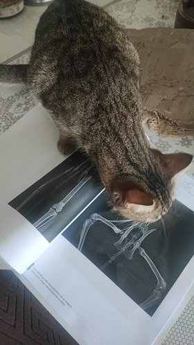 E aqui, uma de nossas gatas, Nina, estudando o caso da Vitória com muita atenção ❤️😺