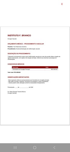 Esse procedimento precisa ser feito em Florianopolis pois só lá tem cirurgiã vascular pediátrico e que é especializado nesse procedimento usando o medicamento Bleomicina 15mg frasco-ampola QUIMIOTERAPICO.