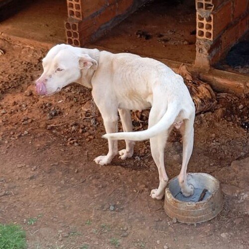 Essa é a Zara uma cadelinha resgatada de uma situação de maus-tratos. Depois de tanto sofrimento, ela desenvolveu um desvio de patela que causa muita dor ao andar e a faz mancar bastante.