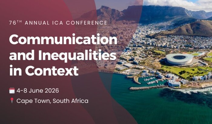 Estou muito feliz em compartilhar que meu trabalho foi aceito para apresentação na 76ª Conferência Anual da International Communication Association (ICA), que acontecerá de 4 a 8 de junho de 2026, na Cidade do Cabo, África do Sul!