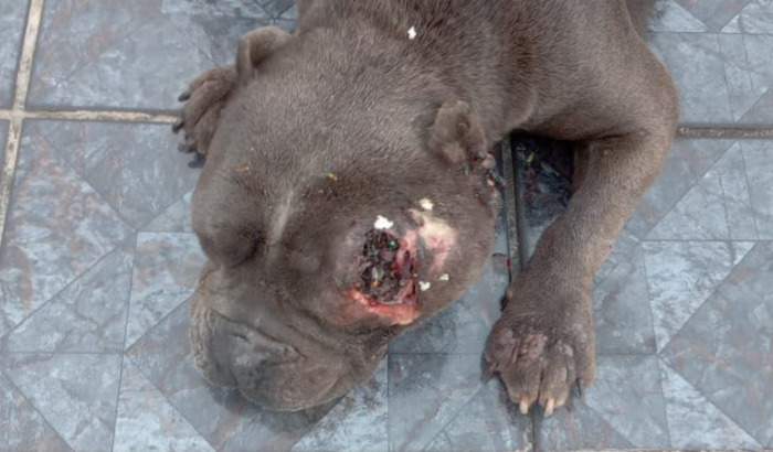 Essa menina apareceu no local de trabalho do meu pai!! Está bem debilitada e com um machucado enorme na cabeça, cheiro bem forte de podre!! Estamos criando essa vakinha para ajudar nos custos com o veterinário!!!