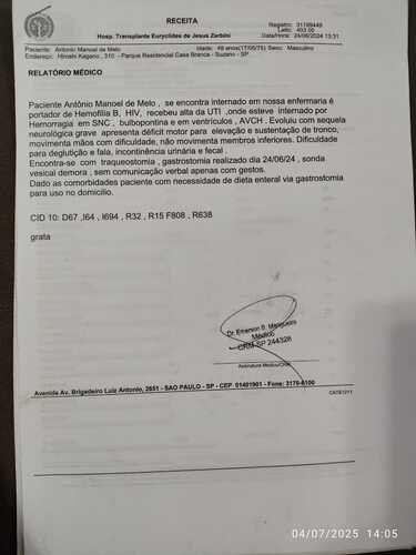 Sou Antonio Manoel de Melo, nascido em 17/05/1975, casado, tenho 3 filhos e portador de Hemofilia tipo B, doença hereditária que se caracteriza pela falta de fator de coagulação no sangue. Essa doença causa hemorragias por traumatismos ou espontaneamente nas articulações, em cortes, em cirurgias e também no cérebro. Essas hemorragias, quando ocorrem nas articulações, causam, devido às repetições, atrofias e por isso o meu joelho esquerdo não dobra e nem estica, além disso o cotovelo direito se encontra com o mesmo problema. Tive o sexto AVC hemorrágico em maio de 2024. Fiquei por dois meses e meio internado, sendo 27 dias na UTI, entubado, Desde então, me encontro sem poder caminhar porque além das atrofias que já possuía, fiquei com sequelas motoras graves, inclusive disfagia. Eu tomo um medicamento intravenoso 3 vezes por semana para diminuir as hemorragias. Tenho várias consultas e tratamentos que precisam ser seguidos, mas algumas consultas acabo perdendo, pois na minha casa tem escadas e preciso da ajuda de 2 homens para me subirem até a garagem e muitas vezes não consigo alguém para ajudar. Os gastos são muitos, com remédios, fisioterapia, idas e vindas à hospitais e outros cuidados que necessito. Preciso de ajuda para terminar uma casa que será acessível, para que eu consiga me locomover e dar continuidade permanente e adequada ao meu tratamento. Desde já, muito obrigado! Deus abençoe!