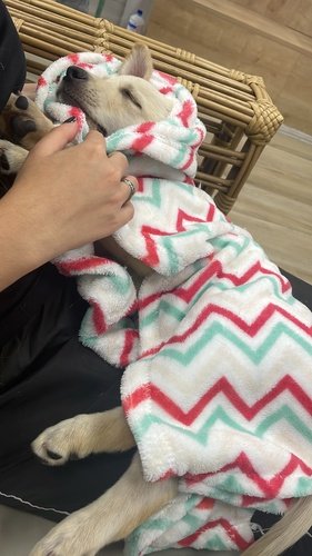 Nosso filhotinho ainda com a tala temporária para minimizar a dor.Muito obrigado pelo apoio! Com a sua ajuda, logo ele estará correndo e brincando novamente. 💕🐾