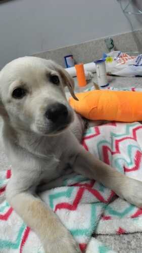 Oi, pessoal! Estou aqui para pedir a ajuda de vocês para o Fred, um filhote de labrador cheio de vida e amor, que infelizmente sofreu um acidente e quebrou a patinha. 😢
