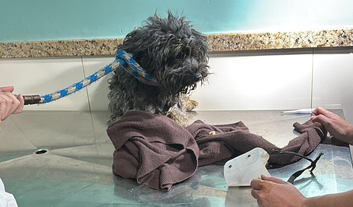 Ele estava no meio da pista, correndo risco de vida, e conseguimos levá-lo para a clínica veterinária Vetthor. Já passou por atendimento, está internado e recebendo os cuidados necessários, mas infelizmente ele não está conseguindo andar, provavelmente por conta de uma fratura na coluna.