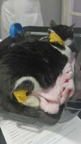 Levamos ela para outra clinica que havia internação, e a Doutora Juliana nos explicou que a Libidose é causada por estresse ou muitas vezes é uma doença secundaria e a Jinx estaria com outra coisa junto com a Libidose, ela solicitou a coleta de sangue e um ultrassom pra descobrir oque causou a libidose e pediu que ela ficasse internada pra fazer isso e se tudo desse certo dia 16 ela realizaria a colocação da sonda pois para que o fígado se recupere ela precisa voltar a comer e a sonda ira ser utilizada para alimentação, agua e administrar os remédios. No dia 16 voltamos ao hospital e houve alteração nos exames dela o Potássio estava muito alto e coagulação estava bem ruim, ela ficou o dia 16 internada, tomou soro pra estabilizar o potássio e vitaminas para a coagulação. Finalmente no dia 17 ela realizou a colocação da sonda e voltou pra casa e segue fazendo o tratamento em casa, a medica disse que vai demorar pelo menos um mes para que ela esteja estabilizada pois ela perdeu muito peso.