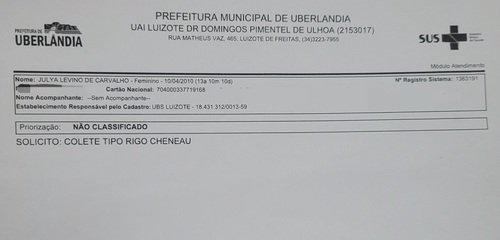 Infelizmente, a escoliose atrapalha no desenvolvimento de diversas atividades, e como tratamento, o ortopedista solicitou emergecialmente o uso de tal colete. Minha família não possui condições suficientes, por isso peço que nos ajude, mesmo com pouco, podemos conseguir atingir a meta e garantir um corpo saudável para a Julya!!