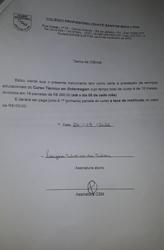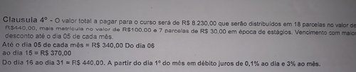 A partir do mês de janeiro sem dar nenhuma satisfação ele deixou de pagar as mensalidades de Janeiro e Fevereiro, que constam em aberto e gerando Juros.