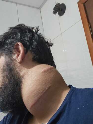 Em 2024, descobri uma massa no pescoço, que começou pequena, mas rapidamente cresceu e hoje passa de 11 cm, devido as várias biospias realizadas, comprimindo nervos importantes, vasos e músculos.Nos últimos meses tenho vivido com: