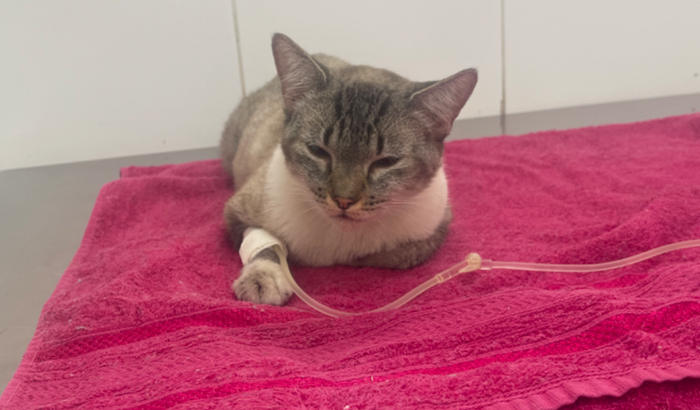 Me chamo Ana e resgatei essa gatinha aparentemente atropelada! Não podia deixar assim e resolvi ajudar, embora não tinha condições!! Mas sei que posso contar com meus amigos!! Porém a situação piorou e foi preciso internar! Me ajude ajudá-la !! Precisamos fazer um ultrassom pq ela está urinando com sangue, não está comendo e nem tomando água!