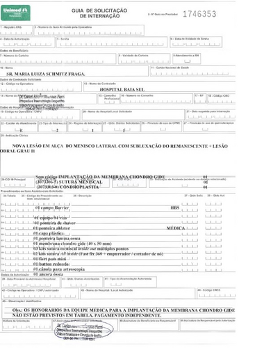 Essa cirurgia, somada ao tratamento pós-operatório, custa entre R$ 25.000,00 e R$ 30.000,00. O grande problema é que o SUS não realiza esse tipo de procedimento especializado, e o plano de saúde cobre apenas uma parte dos valores, deixando um grande saldo para minha família, que não temos condições de pagar.