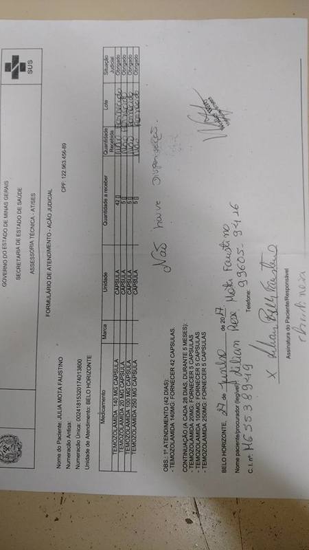 Sou uma jovem cheia de sonhos, com uma família linda que tem feito de tudo para me ajudar nesse momento tão difícil. Fui diagnosticada com o câncer em Glioblastoma, em fevereiro deste ano. Já em abril saiu o resultado da biópsia, no mês seguinte comecei a rádio e quimioterapia. O SUS mesmo sendo obrigado judicialmente, negou o medicamento Temozolamida 340 mg, alegando não ter em estoque, o governo não investe em saúde. Para continuar o tratamento serão 09 caixas, cada uma custa R$ 6.300,00, no total R$ 56.700,00 (Cinquenta e seis mil e setecentos reais). Então peço à todos que colaborem com a quantia que puderem, por favor me ajudem a vencer e a continuar a sonhar.