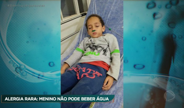 esse e meu filho Miguel, um menino de seis anos, tem uma alergia raríssima: alergia a todo tipo de água. Por isso, ele não pode ter contato nem mesmo com o próprio suor e lágrimas, e os banhos duram no máximo 20 segundos e preciso de ajuda para o remédio dele que alivia a doença e e muito caro