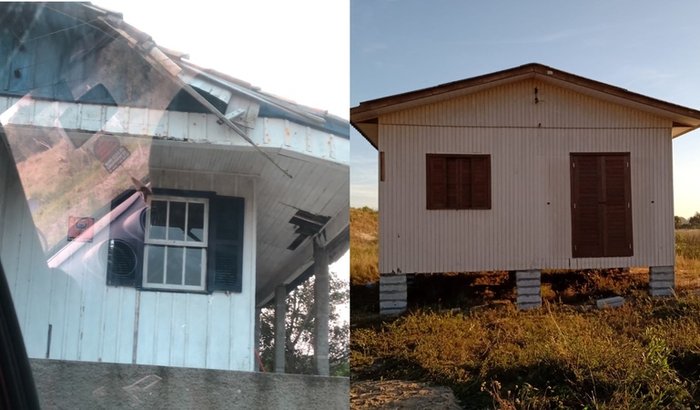 Foi nesse momento que os problemas começaram. Quando ela tentou colocar a nova casa no terreno antigo, alguém denunciou dizendo que era área de preservação (APP), e não permitiram que a mudança fosse feita. A casa já estava em cima do caminhão, ela já tinha pago, e precisava tirar de lá de qualquer forma.
