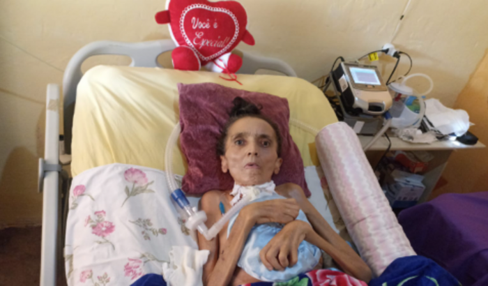 Essa na foto é minha mãe ela sofre de Esclerose Lateral Amiotrófica (ELA), tudo começou em 2020, quando apareceram os primeiros sintomas da doença, que acometeu primeiramente a fala e foi progredindo até deixá-la sem movimento por completo. Hoje, ela se encontra acamada, dependendo inclusive de ajuda de um ventilador mecânico para respirar, os dias são difíceis por vê ela nessa situação, e lembrar que ela era uma mulher bem ativa, comunicativa e gostava de sair e visitar seus vizinhos. O intuito dessa vaquinha é para levantar um dinheiro pra custear o aluguel do ventilador e também de outros produtos de uso diário, como luvas cirúrgica, fraldas geriátricas, sondas uretral, filtros respiratórios e alguns materiais para tratamento de feridas. O ventilador mecânico por exemplo é custeado por nós, e agora, chegou em um momento que está pesando, principalmente porque a reserva de dinheiro que tínhamos está acabando, esse valor arrecadado será pra custear mais alguns meses desse aparelho. Caso contrário, ela precisará voltar novamente para o hospital, correndo o risco de pegar alguma bactéria, ou infecção hospitalar. Isso já aconteceu, por isso foi recomendado pelos médicos a internação domiciliar afim de mantê-la segura.