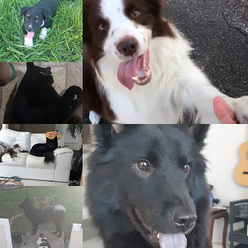Olá Aumigos Tenho 5 filhos peludos. A Olivia, gata de 3 anos e meio, a Duda, uma mestiça de 2 anos e meio, o Zion, nosso gato preto de 1 ano, o Lucky, nosso border collie de 1 ano e nossa temporã, Lua, de 3 meses(Que está na foto de perfi ver tudo