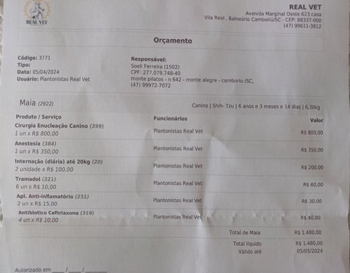 Eu sou Gian, minha cachorrinha Maya furou o olho, inflamou,inxou e deu perda de visão e o veterinário passou que terá que remover, no momento não tenho condições,pois só eu estou trabalhando , então venho pedir ajuda, obrigado a todos que ajudaram , por favor ajude!