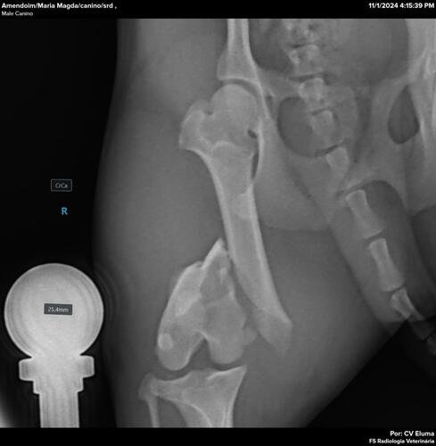 O Amendoim foi atropelado e abandonado nas ruas com um fêmur quebrado, mas foi resgatado e está internado, aguardando a cirurgia que ficou no valor de R$2.740,00 que precisa ser paga para que ele possa ser operado.
