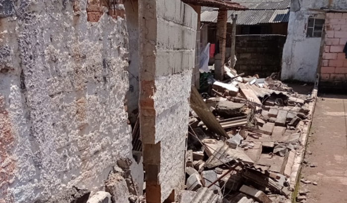 Ela morava numa casinha de fundos, que foi totalmente destruída pelas chuvas do dia 23/02. A casa está condenada pela Defesa Civil.