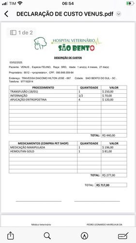 Oi! Me chamo Giulia, e quero pedir ajuda para continuar o tratamento da nossa gatinha Vênus, que é FELV+.