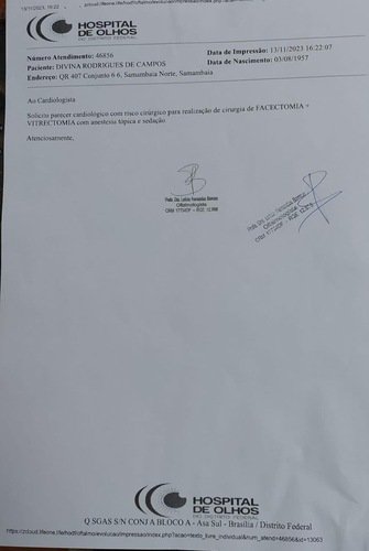 (De acordo com o médico que tem acompanhado o caso, a não realização com urgência da cirurgia pode provocar a perda da visão do olho direito também. A situação é grave e muito delicada!)