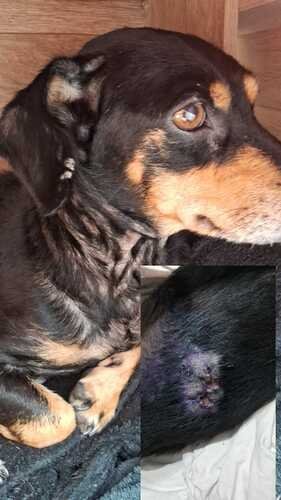 Após tratarmos da ferida levamos ela, bastante preocupados, ao veterinário mesmo sem ter condições financeiras para arcar com todos os custos. E o diagnóstico foi Sarna e um fungo que causam coceira intensa, Leishmaniose além de ela ter um nódulo nas mamas que precisa ser retirado o quanto antes, pois a área está infeccionada e dolorida, com risco de atingir outros órgãos.