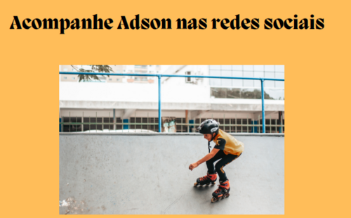 Sou Adson de Oliveira Tavares Martins, 11 Anos, patinador profissional desde os 8 anos. Faço Parte do Projeto Social Patina Campos na Comunidade em Ururaí em Campos dos Goytacazes/RJ