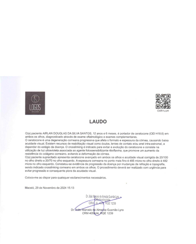 O procedimento chamado crosslink corneano custa R$16 mil e é essencial para impedir o avanço da doença. Enquanto o Estado ignora a ordem judicial, o tempo corre contra ele.