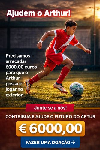 O problema é financeiro. Arthur não tem condições de se manter fora do país durante esse período. Por isso, criamos esta vaquinha com um objetivo claro: arrecadar 6.000 euros, valor necessário para que ele consiga se manter por até 6 meses com moradia simples, alimentação básica, transporte local e custos esportivos.