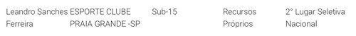 Em 2025 consegui novamente a vaga da Seleção Brasileira sub 15, mas devo participar 100% com recursos próprios.