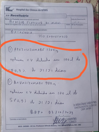 O que salvaria minha vida agora é o medicamento para ser aplicado chamado : ATEZOLIZUMABE 1200 MG