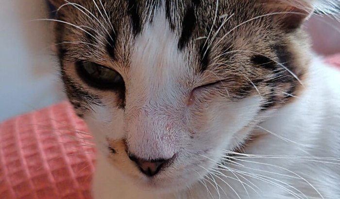 Aquele machucado que ele tinha no olho não melhorava. Depois de passar pelo veterinário local e gastar muito com consultas, fomos encaminhados para um oftalmologista veterinário (o atencioso e extremamente profissional Dr. Heitor Lucatelli). O diagnóstico de cara foi Coloboma na pálpebra superior.