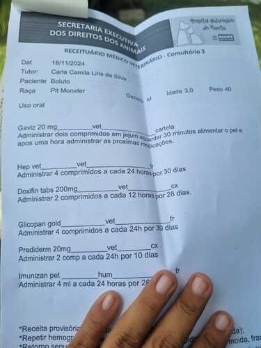 Olá, meu nome é Carla Camila, sou de Recife - PE e estou passando por um momento muito difícil com meu cachorro Boruto. Ele foi diagnosticado com a doença do carrapato e infelizmente, devido à gravidade do quadro, as pernas dele paralisaram. O tratamento é urgente e custa R$ 2.008,00, o que está além das minhas possibilidades financeiras no momento.