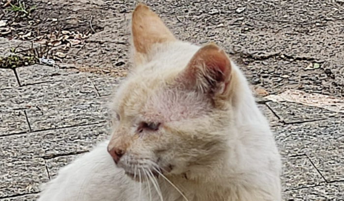Depois de muito trabalho ela conseguiu capturar e levar ao veterinário. O Branquinho tem uma infecção na boca que impede de se alimentar corretamente e por isso estava sempre babando.
