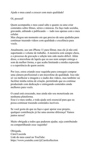 Ajude o canal a continuar, campanha para comprarmos uma câmera e um microfone de qualidade