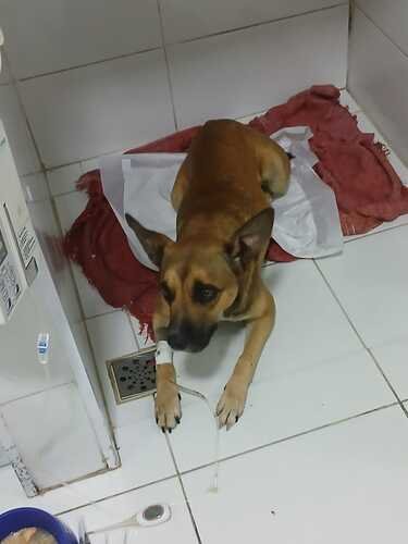 Ele está internado, fraco, apático e sem apetite. A diarreia líquida com grande quantidade de sangue ainda persiste. Mesmo assim, ele segue lutando. Exames estão sendo realizados para acompanhar sua evolução, incluindo hemograma e ultrassom abdominal — exames caros, porém indispensáveis para salvar sua vida.