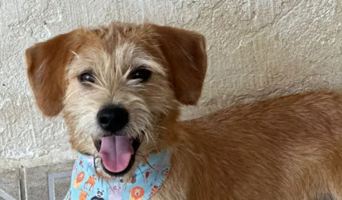 Este doguinho caramelo estava vagando pelas ruas da Barra Norte, em Balneário Camboriú.
