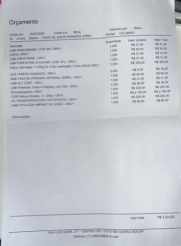 R$3500 são para a cirurgia, e R$1000 são para quitar os gastos que já tivemos com ele durante o resgate (consulta de emergência, exames e remédios). Todos os valores e comprovantes estão anexados abaixo.