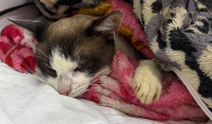 Estava sofrendo muito com um quadro de obstrução uretral e cálculos na bexiga, e precisou ser submetido a cirurgia de cistotomia (para retirada dos cálculos da bexiga) e penectomia (cálculos ficaram presos na porção final da uretra e acabou necrosando).