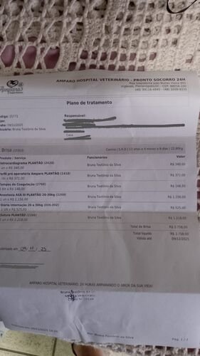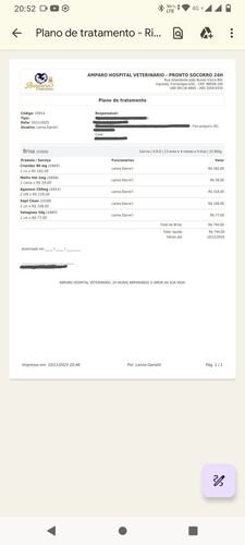 NAS FOTOS: A requisição das medicações e o plano de tratamento que foi feito na clínica. O cão branco com marrom é o Drake! (Retiramos a foto da cadela e o nome, para gerar menos conflito entre as tutoras)