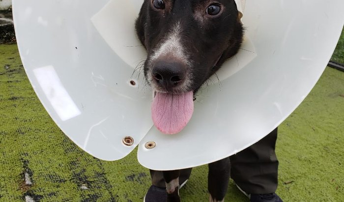 Na manhã do dia 13 de maio fui chamada em minha residência para ajudar um cãozinho abandonado e amarrado a uma árvore ao lado de casa. Ele estava com a orelha dilacerada e comida por bichos. Ficou abandonado por 48h (segundo relatos), se tratava de um animal de um morador de rua. Ele estava assustado, faminto, com muita dor e agressivo. Depois de algum tempo consegui capturá-lo, levei-o à internação veterinária e prestamos os primeiros socorros.
