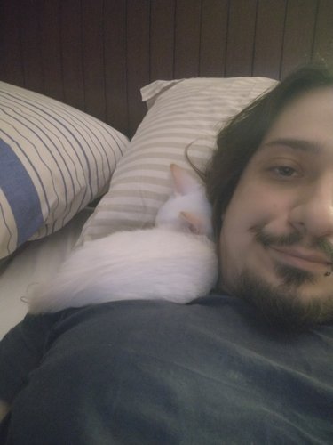 Olá , meu nome é Rodrigo sou atual dono do floquinho, ele foi resgatado de uma pessoa da qual não tinha condições de cuidar dele. Ele estava bem judiadinho quando chegou aqui no dia 2 de Dezembro de 2020 em plena pandemia, e o que seria um lugar temporário virou um lar definitivo. logo vimos q ele é um mordedor nato e um bagunceiro de tamanho inestimável . Aqui não tem gato mais mimado que ele!