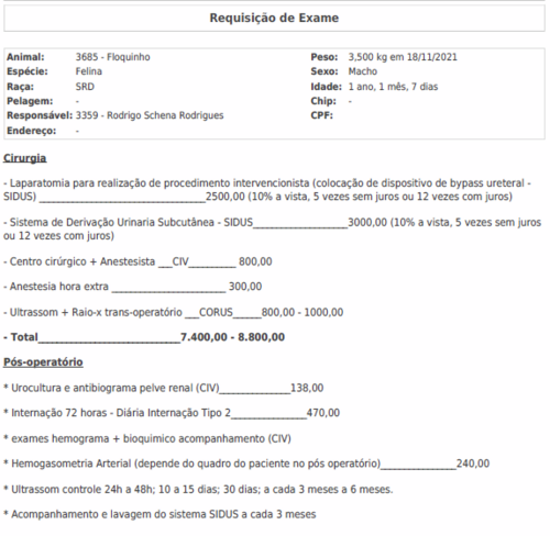 Floquinho completou 1 ano de vida e Infelizmente na semana do dia 8/11/2021 ele começou a passar mal, levamos ao veterinário, ele ficou internado e fizemos exames . Ele foi diagnosticado como doente renal crônico e com uma obstrução em um canal do rim.