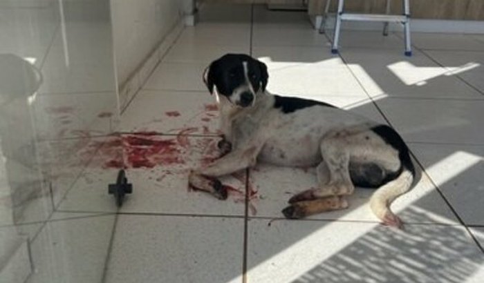Pessoal, esse pequeno é o Floquinho, um cão de rua, que foi atropleado na sexta-feira, a pessoa que o atropelou não prestou qualquer socorro. O veículo passou em cima de suas duas patinhas da frente, estava com as patas e orelhinhas cheias ver tudo