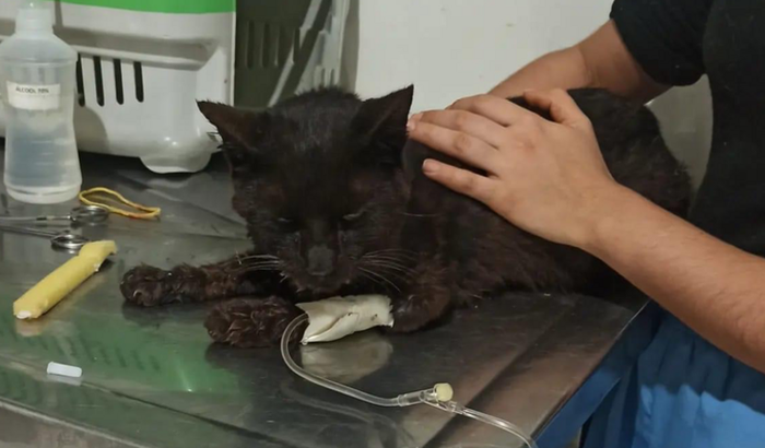 “Passei dias de olho nele, tentando o resgate e ontem quando abri o portão da minha casa, para minha surpresa e emoção, lá estava ele, muito judiado e doente. Até agora o diagnóstico é de estomatite, sua boquinha está sangrando e com infecção tão grave que dificulta comer, me partiu o coração.”