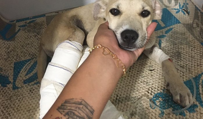 Resgatamos e levamos pra @tocadosbichos , ele precisa fazer uma cirurgia de emergência nas 2 Patinhas o mais rápido possível, a cirurgia vai custar R$ 4.250,00 por causa do implante da placa e do fixador nas patinhas!