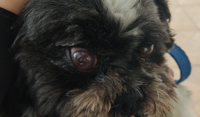 O olho estava inflamado e inchado como na foto, hoje de manhã, 26/08/2022, ele estourou comigo. Tivemos que levar ele na emergência e ele fará a cirurgia hoje às 2:00 horas.